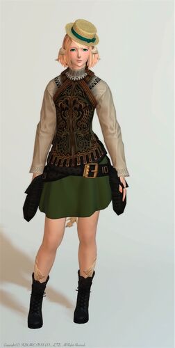 【頭】ディアンドルハット 装備レベル:全クラス Lv1〜 カララント:デフォルト 入手方法:ファイナルファンタジーXIV オンラインストア 【胴】イヴァリース・スカイパイレーツジャケット 装備レベル:弓術士 吟遊詩人 機工士 踊り子 Lv70〜 カララント:染…